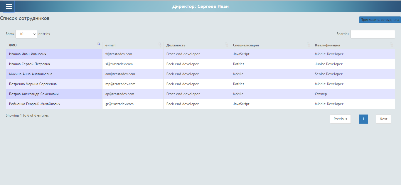 В 2016г разработал веб – приложение для обучения персонала в компании. Приложение писалось с использованием Node.JS, фреймворка Express. На фронтенде использовался фреймворк Bootstrap и шаблонизатор EJS.