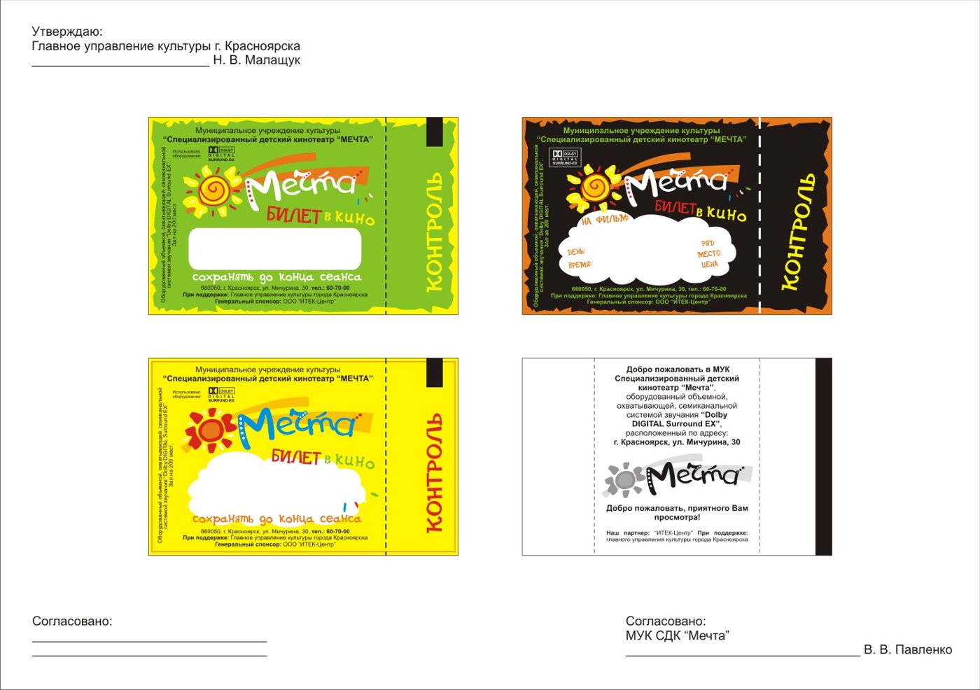 Участвую в разработке фирменного стиля и интерьера МУК СДК «Мечта» (детский кинотеатр)
