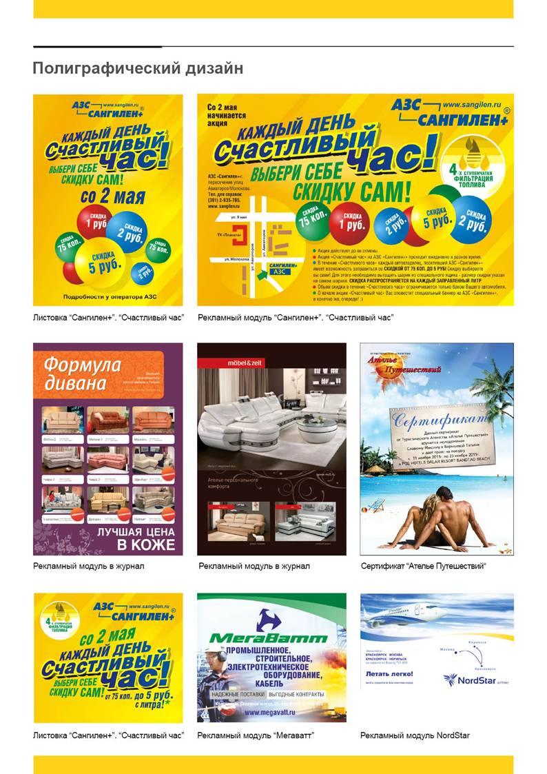 Работа напрямую с заказчиком, работа над групповыми проектами, быстрое и качественное выполнение должностных обязанностей. Графический дизайн (листовки, логотип, упаковка, карманные календари, сувенирная продукция, корпоративная графика, инфографика, открытки). Ретушь фотографий, цветокоррекция, создание рисунка в графической программе (иллюстрация). Верстка (календарей, каталогов, буклетов, справочников, рекламных и информационных листовок, приглашений). Подготовка к печати.