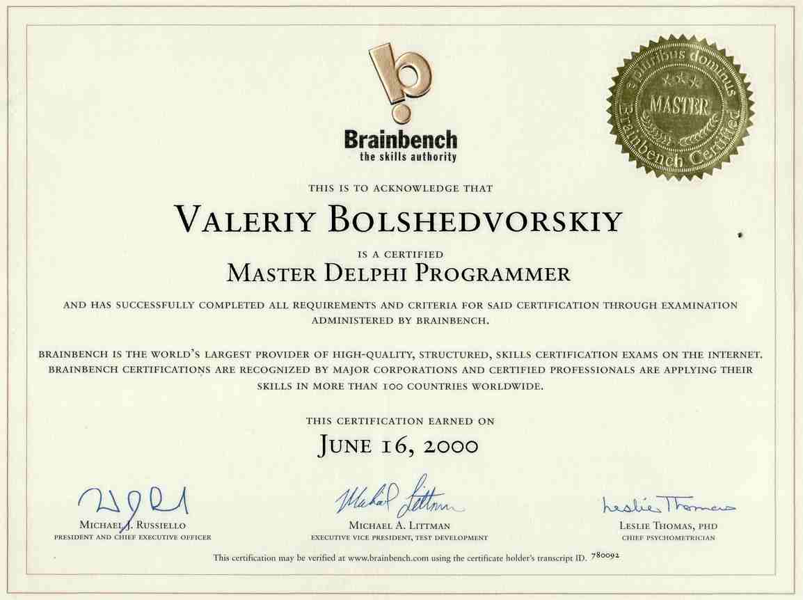 Разработки систем управления Базами Данных: Разработал более 10 оригинальных прикладных программ для автоматизации различных рабочих мест . Для разработок были использованы инструментальные средства: Borland Delphi 2-7, Paradox 4.5-9