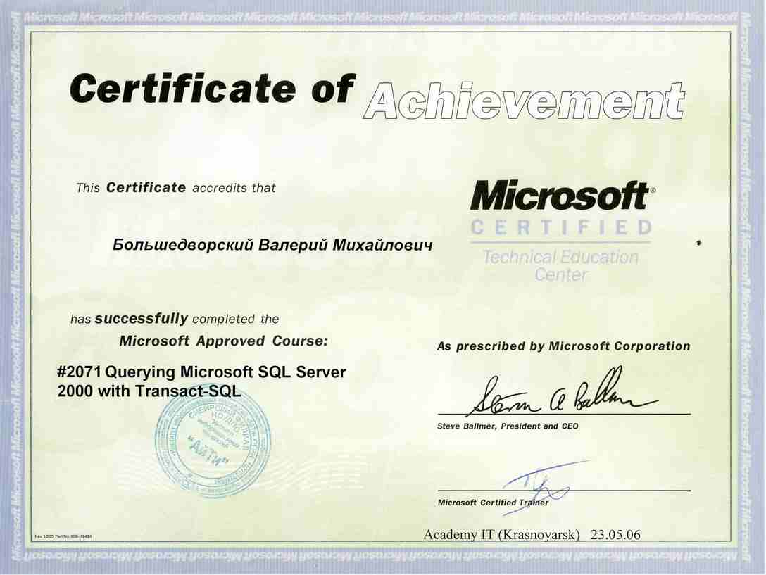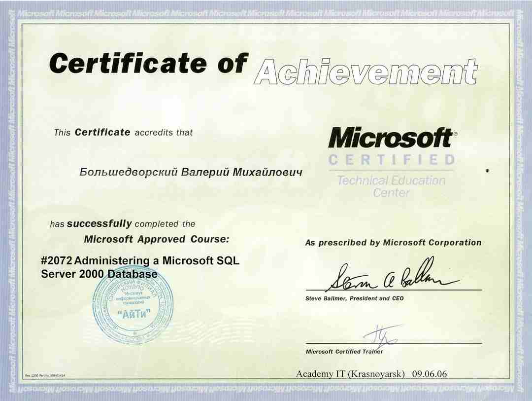 Специалист по техническому обслуживанию персональных компьютеров и администрированию локальных вычислительных сетей на базе ПО Microsoft.