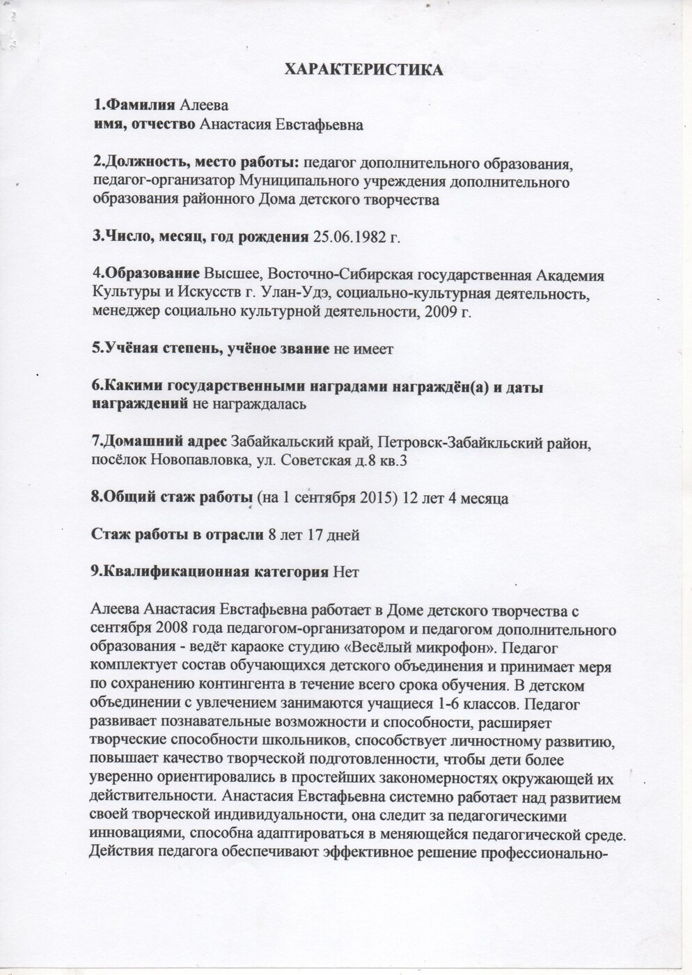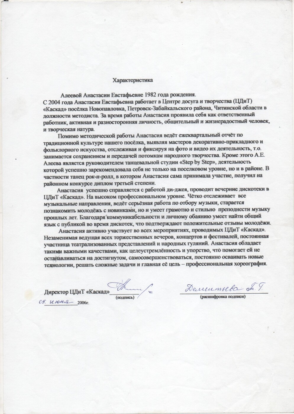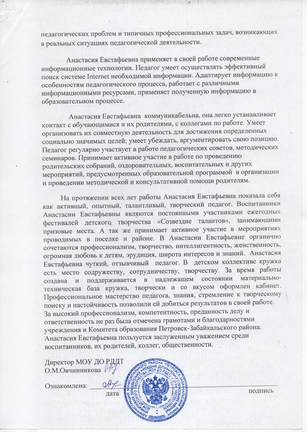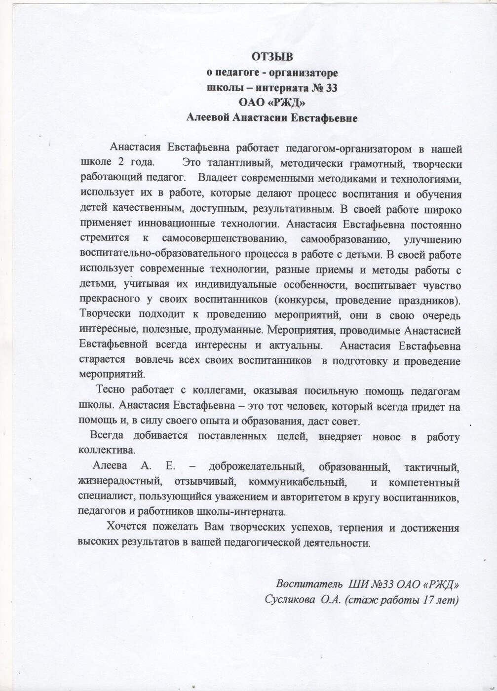- имею характеристику с данного места работы, отзывы коллег