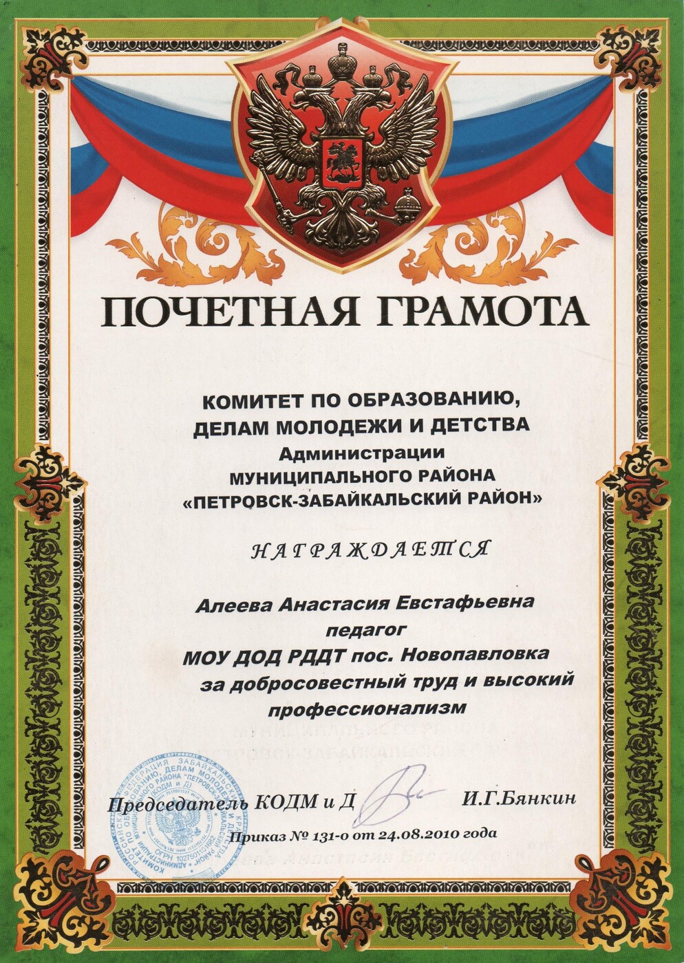 - имею грамоты, благодарственные письма за хорошую работу, добросовестный труд