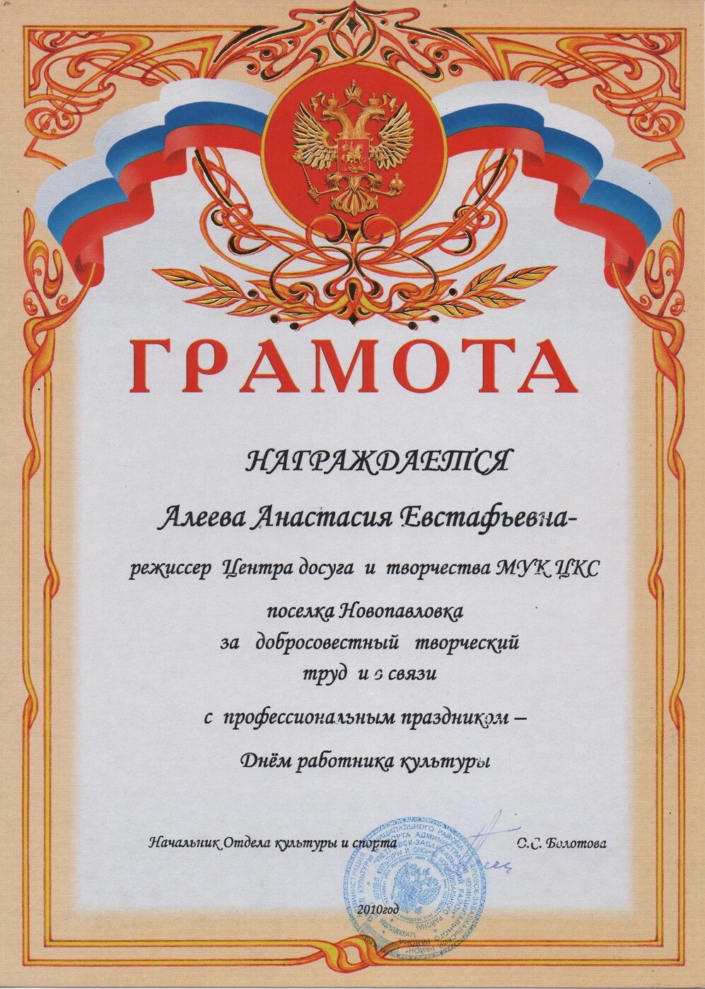 Муниципальное учреждение «Централизованная клубная система» Центр Досуга и Творчества «Каскад» посёлка Новопавловка