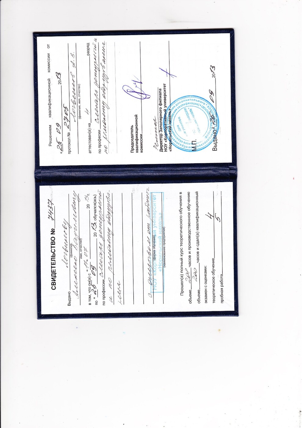 Слесарь дежурный и по ремонту оборудования 4 разряда подземного участка буровых работ рудника "Октябрьский"